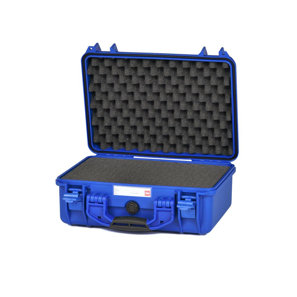 Valigia in resina leggera, stagna e indistruttibile con interno personalizzabile. Può essere acquistata vuota, completa di spugna interna pre tagliata (composta da uno strato di bugnato sul coperchio, un fondino liscio ed uno strato intermedio) o con la borsa interna in nylon.