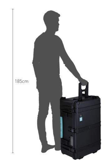 Valigia in resina leggera, a tenuta stagna e indistruttibile con interno personalizzabile e completa di 4 ruote. Può essere acquistata vuota, completa di spugna interna pre tagliata (composta da uno strato di bugnato sul coperchio, un fondino liscio ed uno strato intermedio), con la borsa interna in nylon o con una borsa interna completa di divisori.